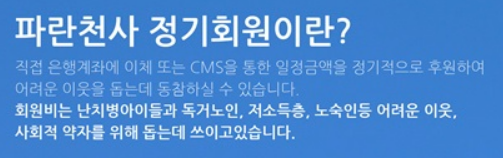 직접 은행계좌에 이체 또는 CMS을 통한 일정금액을 정기적으로 후원하여
