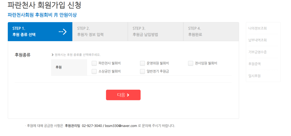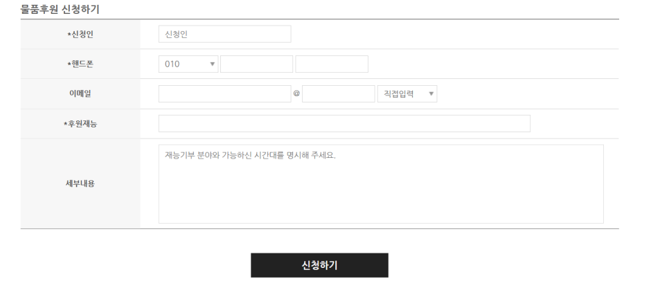 아래의 신청 페이지에 연락처 등의 기본정보와 후원에 대한