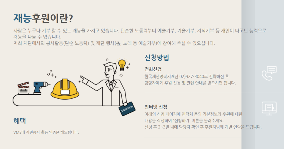 나눌 수 있습니다. 저희 재단에서의 봉사활동 (단순 노동력) 및 재단행사