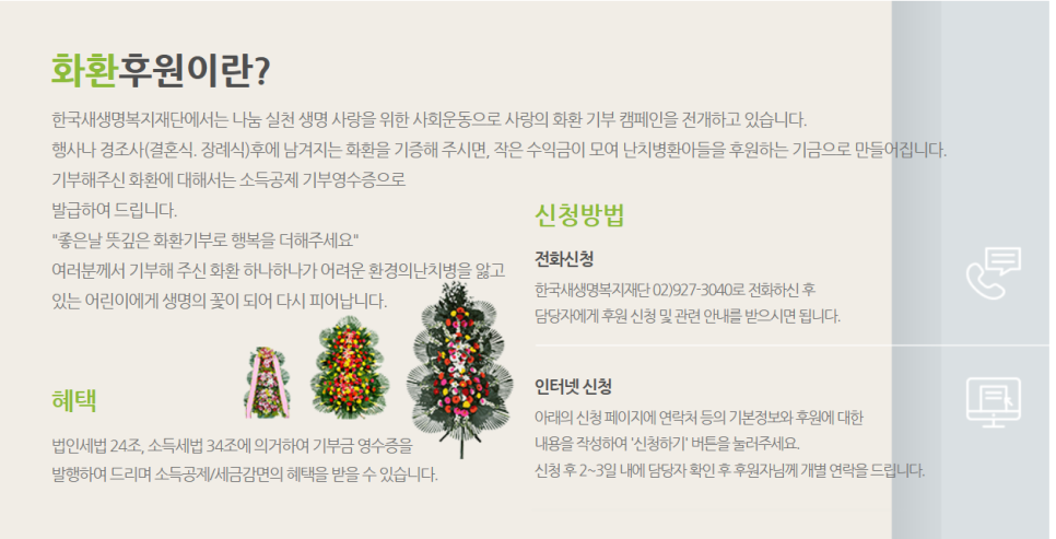 기부해주신 화환에 대해서는 소득공제 기부영수증으로 발급해 드립니다.